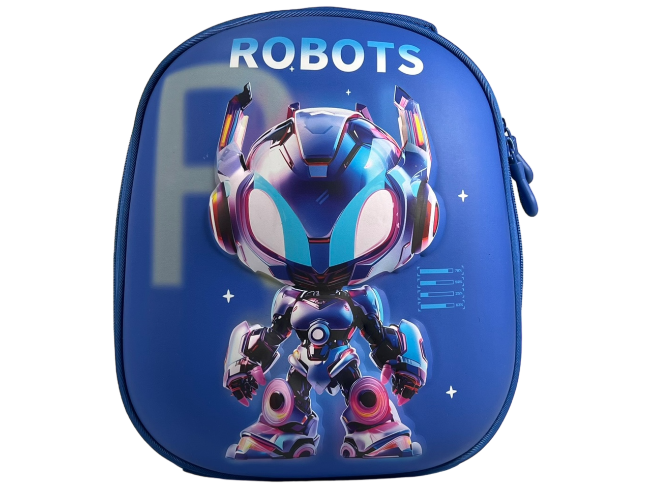 Рюкзак представлений у яскравих кольорах з принтом "роботи", що дотакє йому оригінальності та робить його привабливим для маленьких любителів техніки.